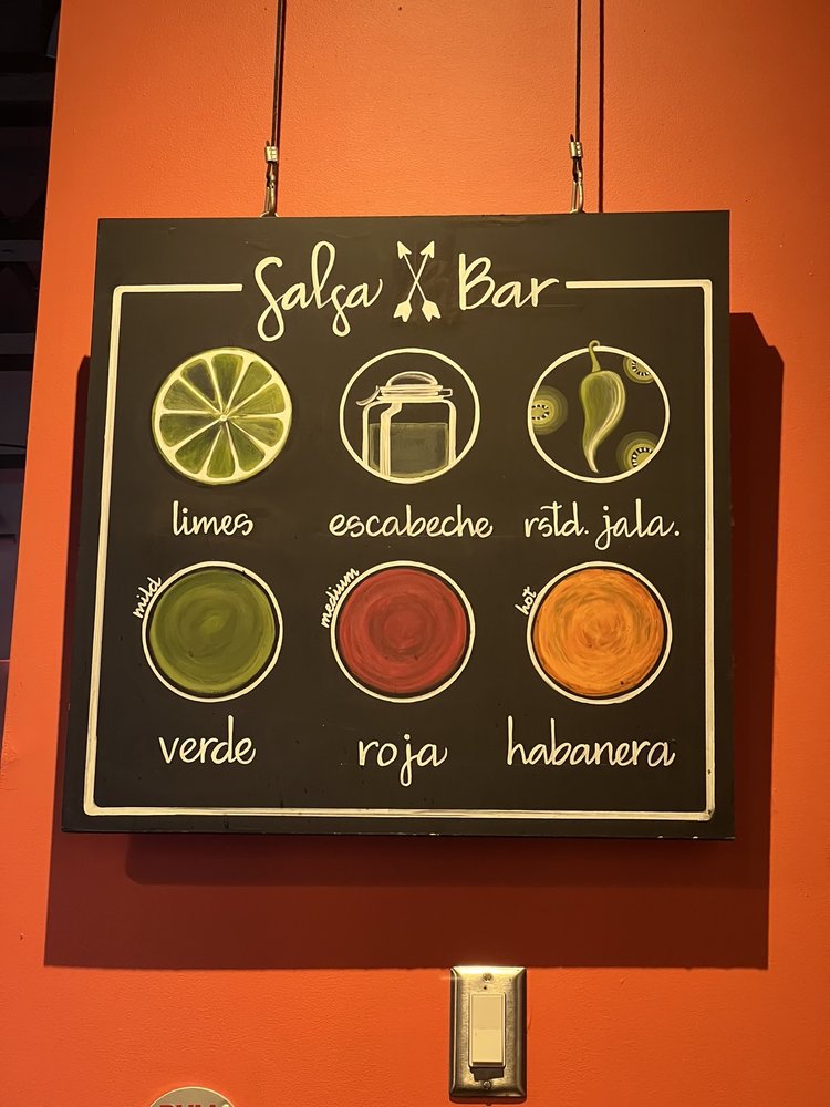 Rice, frijoles negros, pulled rotisserie chicken, slaw, cotija cheese, salsa Verde, salsa habanera.
