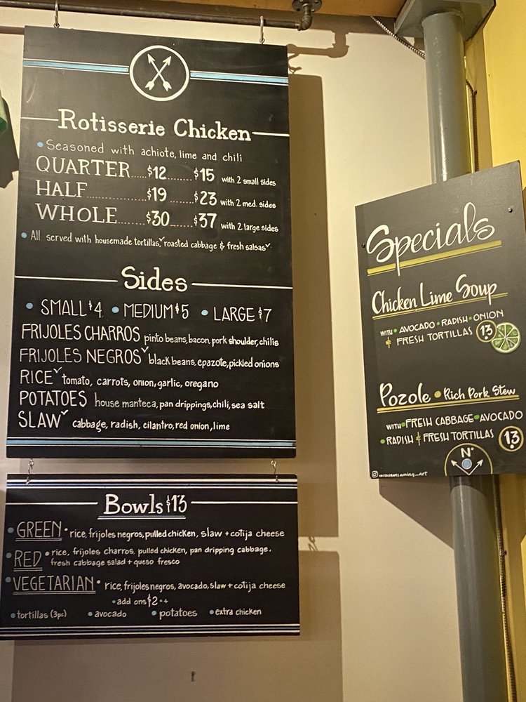 - Quarter Chicken Combo: Includes pandrippin' cabbage and fresh salsas for a satisfying meal.